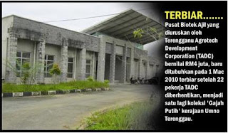 "Projek ternakan ikan di Sungai Como terjejas dan sebuah bangunan yang diserahkan kepada TADC untuk aktiviti bio-teknologi di Pusat Pertanian Ajil bernilai RM4 juta kini menjadi 'seekor lagi gajah putih',